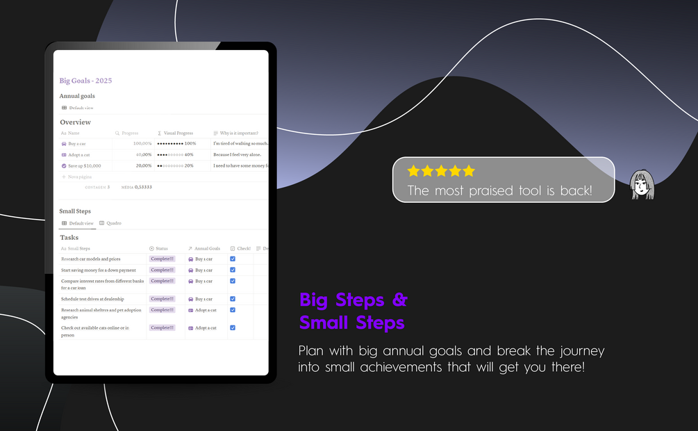 • Annual Goal Tracking (Big Steps) - Stay focused on your yearly goals with visual progress tracking.